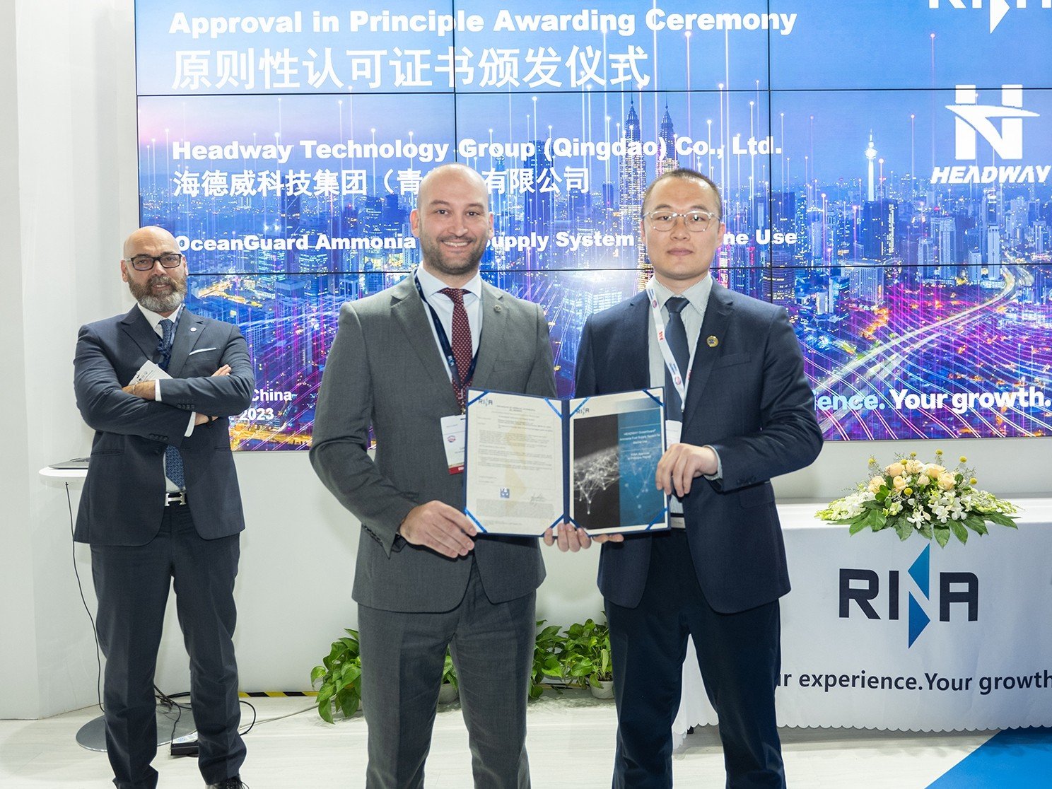 2023年中國國際海事會(huì)展上,海洋衛(wèi)士?氨燃料供給系統(tǒng)正式取得DNV船級(jí)社和RINA船級(jí)社授予的原理認(rèn)可證書,標(biāo)志著海德威低碳航運(yùn)產(chǎn)品生態(tài)再度擴(kuò)軍并取得業(yè)界權(quán)威認(rèn)可。